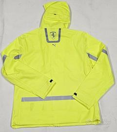 Giacca impermeabile antipioggia ad alta visibilità, originale Puma per Ferrari, utilizzata dal team meccanici durante la stagione di Formula 1 2024 durante l'allestimento dei box, taglia XL.