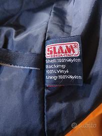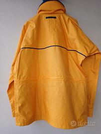 Come da foto, vendo giacca impermeabile nautica, marca Slam, usata poco taglia L. Tasche, chiusura zip, cappuccio retrattile nel colletto con fodera interna ed elastico in vita.