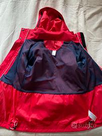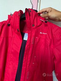 Giacca impermeabile di colore fucsia della marca Decathlon, taglia S, con varie tasche, laccetti e cappuccio removibile. Molto comoda ma mai usata quindi è totalmente nuova come da negozio