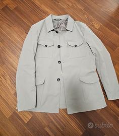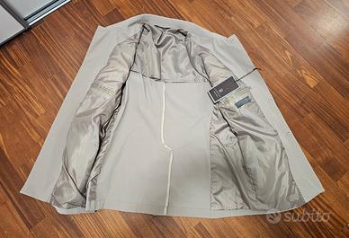giacca trench stile giapponese con 4 tasche applicate e spacco posteriore, tessuto impermeabile ed elasticizzato, taglia 54 ma veste 50 regular, nuovo con cartellino