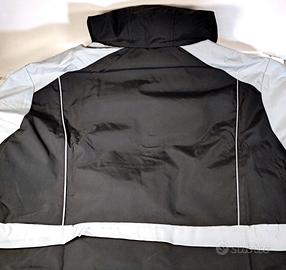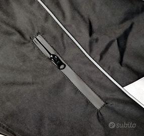 Vendo ottimo giubbotto impermeabile ed anti vento con lavorazione ben fatta, ottime cuciture, geometria precisa, inserti ben fatti, colore nero e grigio e con inserti riflettenti. Il materiale, poliestere, risulta di bel aspetto, decisamente gradevole al tatto e risulta robusto. L'intero giubbotto risulta foderato con un tessuto molto morbido e gradevole al tatto, anche le maniche. Comodi i polsini elasticizzati, ottimi contro il vento. Le cerniere sono belle, funzionali e scorrono bene mantenendo una certa impermeabilità. Le tasche, due basse ed una sul petto, ben realizzate, della giusta ampiezza. Comodi, e di facile uso, i due cordini elastici che svolgono funzione di tiranti per chiudere il profilo basso e contro infiltrazioni di vento all'interno. Utili gli inserti riflettenti presenti sia frontalmente che dietro. Il design generale risulta moderno e sportiveggiante. Ampio e comodo il cappuccio, copre bene sia contro il vento che la pioggia. Ben fatto e della giusta altezza il collo che copre altrettanto bene. Malgrado la robustezza e impermeabilità il giubbotto risulta abbastanza leggero relativamente al peso. Le misure sono di una L standard 48 cm. larghezza all'altezza delle spalle 54 cm. larghezza all'altezza del torace, circonferenza 108 cm 43 cm. lunghezza media manica 60 cm. altezza corpo, senza contare cappuccio Il giubbotto è stato acquistato in dicembre 2025, a € 40, indossato una sola volta all'arrivo per verificare la vestibilità, che risultava per me leggermente stretto, poi riposto in confezione originale e mai più utilizzato nuovamente, quindi risulta nuovo, vendo oggi a € 20, non trattabile, possibile ritiro a mano o spedizione.