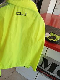 giacca sottile, leggera e resistente anti acqua con doppia chiusura (cerniera e velcro), cappuccio a scomparsa, giallo fluo alta visibilità, e inserti riflettenti. ideale per bici e moto grazie agli elastici che la rendono antivento e sigillante. la giacca è dotata di apposita sacca , una volta richiusa occupa poco spazio . disponibile anche il pantalone della stessa linea (nero)