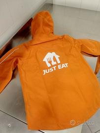 Giacca autunno/inverno unisex con cappuccio, impermeabile e traspirante, marchio JustEat e Deliveroo, ideale per delivery Logo e bande catarifrangenti Disponili tre modelli, due taglia M (J.E. + Deliveroo) e un altro taglia S (J.E.) Mai usati, in confezione originale Gilet in regalo Prezzo cadauno, non trattabile Possibilità di spedizione