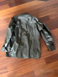 Impermeabile a giacca del brand Piero Gazzarrini Uomo. Modello particolare con cinturino al collo e cintura in vita amovibile. Un paio di automatici hanno segni nello smalto ma il capo è stato indossato davvero poco. Non c'è più l'etichetta della taglia (48/50 italiana circa) ma ecco le misure. torace (ascella/ascella) cm60 lunghezza cm78. Spalle senza cuciture