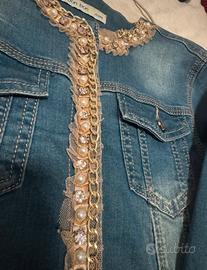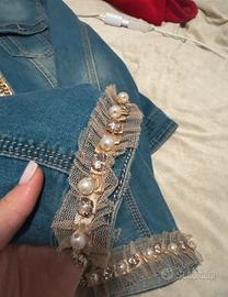 giacchetta in jeans,con perle e gemme