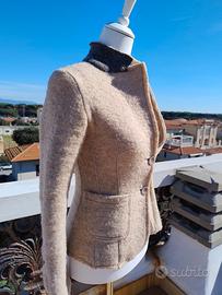 Splendida giacca in lana cotta, colore beige caldo, con linea femminile strutturata che valorizza il punto vita.