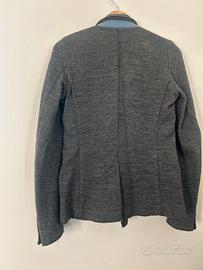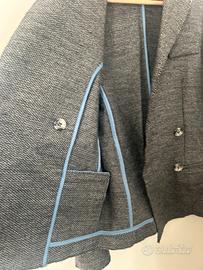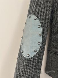 Giacca doppiopetto in lana spinata colore grigio Toppe in pelle azzurre- tg 42