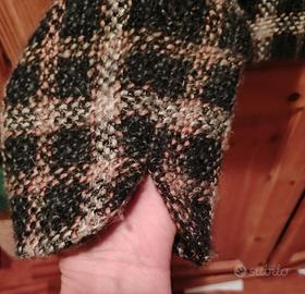 Giacca 50% lana. Corta sotto la vita. Modello sfiancato. Tg 40. Color verde marrone. Fantasia a quadri. Chiusura con bottoni