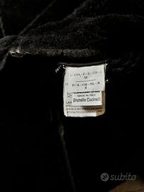 Montone corto Brunello Cucinelli taglia M, colore marrone testa di moro, pelle morbidissima di prima qualità italiana. Modello a giacca con maniche in maglia di cachemire 100% stesso colore, pelle rasata all’interno, collo a scialle di larghezza massima cm 11, chiuso da due bottoni interni a scomparsa. Misure: lunghezza cm 58, larghezza da ascella a ascella cm 47, spalle cm 43, lunghezza maniche cm 63, larghezza vita cm 40. Vestibilità perfetta per la taglia 40, scarsa per la taglia 42, controllare le misure date. Condizioni ottime per l’usato , non presenta macchie o graffi sulla pelle, il cachemire e le cuciture sono perfette.