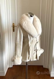 Mosco Cortina d’Ampezzo Giacca di montone (sherling) e pelliccia si volpe con dettagli in cuoio. Interno in pelliccia incluse le maniche. Due tasche laterali. .