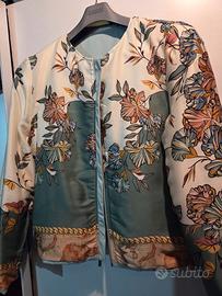 giacca in pelle color carta da zucchero, duoble face ..molto bella. indossato solo una volta per una cerimonia. taglia 48