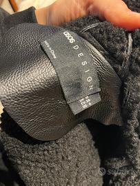 Giacca aviatore nera e collo alto con all'interno finta pelliccia calda, chiusura zip e collo alto, tasche, bordi maniche sempre in pelliccia sintetica, indossata 1 volta e vendo per inutilizzo, veste leggermente oversize, taglia UK 10, US 6, EU 38 che corrisponde alla 44