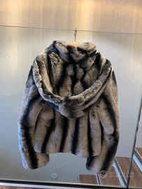 Vendo giacca in pelle chinchilla per donna. Modello moderno con cappuccio.