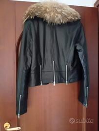 Elegante e casual allo stesso tempo, giacca in pelle nera con vera pelliccia di marmotta. Ottimo stato usata solo un paio di volte. Taglia 42
