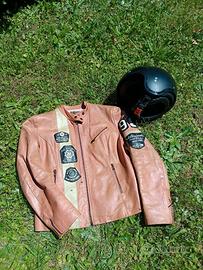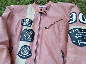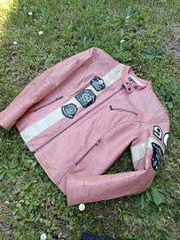 Vendo giacca in pelle vintage, color pesca chiaro. È una giacca di pelle autentica, con un aspetto vissuto ma in buone condizioni.