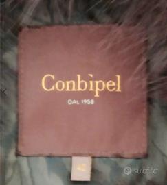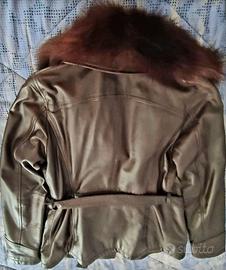 Giacca in pelle Conbipel da donna, con collo in pelliccia di volpe; cintura in vita, cuciture trapuntate e bottoni coperti.