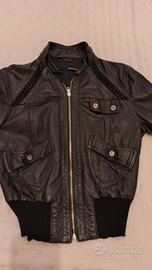 Giacca in pelle,con elastico in vita e ai polsi,ottima vestibilità,leggermente rovinati i bottoni come da foto,ottimo affare!