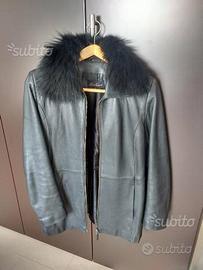 giacca di pelle Luisa Spagnoli, taglia 42 con collo di pelliccia, tenuta benissimo