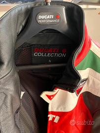 Giacca in pelle Ducati by Daynese, conservata sempre in armadio, come nuova taglia 54, pezzo raro per lo stato di conservazione. Unico piccolo segno di usura alla base della cerniera, dove toccava il serbatoio. Ritiro in zona a Ferrara (FE) in modo che la si possa visionare e provare.