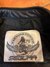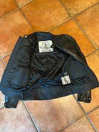 Giacca in pelle di alta qualita con protezione gomiti e spalle. Dotata di regolazioni del polso con cerniera e di regolazione in vita. Nuova. Mai indossata.