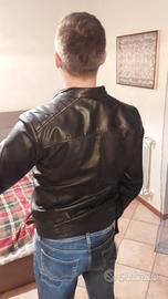giacca vera pelle nera conbipel usata, diversi segni di usura sulle maniche e I bordi taglia 48 io sn alto 1,82 x 80 kg