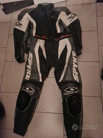 Tutta divisibile,versatile di qualità per una guida su strada ad alta prestazione,taglia 52.Giacca pelle bovina,protezione omologate su spalle e gomiti,interno rivestito con fodera traspirante,Pantalone protezione omologate su ginocchia dal profilo anatomico,gambe pre-curvate per ridurre l'affiancamento e migliorare la vestibilità.