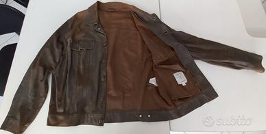Giacca in pelle CONBIPEL Taglia 48 Modello vintage con tessuto in pelle "vissuto" Chiusura con bottoni metallici, tasche, maniche e retro con bottoni metallici. Piccola lacerazione in corrispondenza del taschino sinistro sul torace (v. foto)