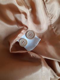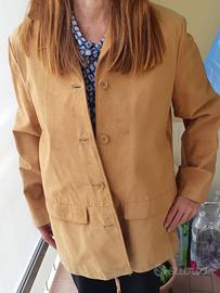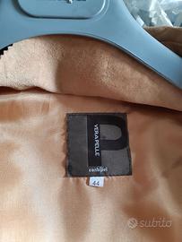 Giacca in vera pelle di renna scamosciata da donna color beige, taglia 44 Conbipel. Il modello non è sfiancato, ha piccoli spacchi laterali, chiusura con 4 bottoni, 2 tasche esterne con chiusura a pattina. All'interno la fodera è integra e nell'etichetta sono cuciti i bottoni di ricambio (1 per polsini e 1 per chiusa della giacca).Ottimo stato e finiture, utilizzata solo un paio di volte, consigliata per uso primavera e autunno.