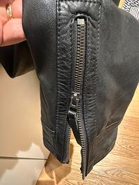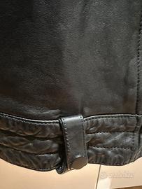 Giacca chiodo ottima pelle morbida colore nero misura da ascella a ascella cm 54 maniche cm 66 da spalla a spalla cm50 lunghezza dietro dal collo cm 70 larghezza dove c’è il giro vita cm .53 lunghezza davanti dalla spalla cm 65