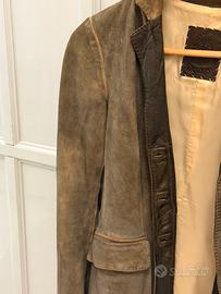Giacca in pelle stile scamosciata vintage dondup xs bottoni marroni messa 2 volte. La giacca é in pelle ed è pesante non è leggera. Vera pelle