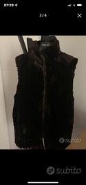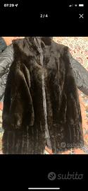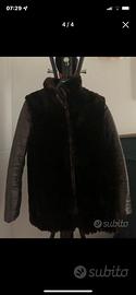 giacca in pelliccia di castoro marrone con inserti in pelle