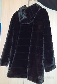 Vendo giacca in pelliccia nera con cappuccio taglia L