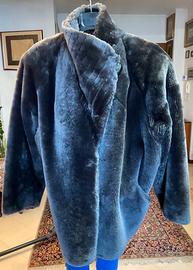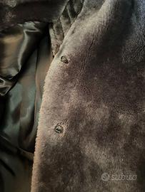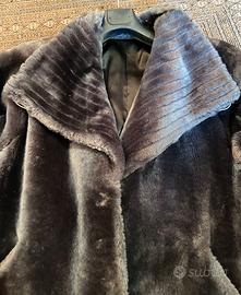 Giacca in pelliccia sintetica grigio scuro, dalla texture morbida e vellutata.