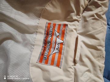 Giubbotto in piumino sintetico color panna, modello semplice, taglia XL ma con vestibilità slim, spalle 47, lunghezza 71, maniche 65. Chiusura con zip, 2 tasche esterne chiuse con zip, una tasca interna.