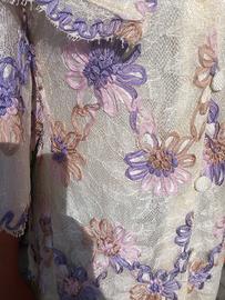 Giacca in pizzo sartoriale. Lunghezza totale 81 cm. Giroseno 90 cm. Larghezza spalle 42cm. Girovita 100 cm. Indossata una sola volta.