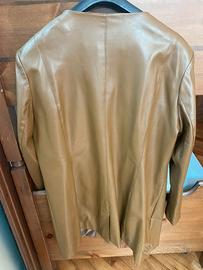 Giacca in similpelle con chiusura a cerniera, scollatura tonda, tre quarti. Chiusura sul davanti a cerniera.