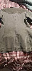 Bellissima giacca in velluto verde a coste , aderente al corpo e stile cavallerizza. Toppe in velluto liscio sui gomito e sulle spalle nel retro.