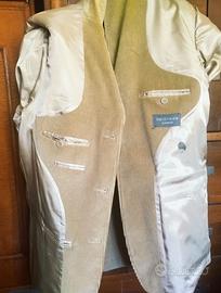 La giacca è un monopetto, tre bottoni, tasche a pattina e doppio spacco sul retro, 4 tasche comode interne.