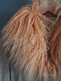 Giacca vintage anni ’90 in vera pelle, dal design decisamente scenografico e di grande personalità. Un capo statement per chi ama lo stile bold, glam e retrò, con collo e polsini in pelliccia mongolia lunga che la rendono unica e super d’impatto.