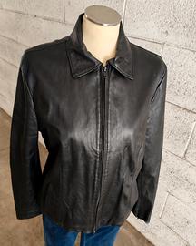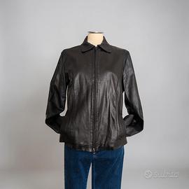 Giacca in vera pelle di colore nero con chiusura lampo Tg 48 2 tasche Manifattura artigianale Made in italy Presenta una piccola imperfezione all interno di un polsino da riparare la fodera interna non visibile al di fuori Per il resto è perfetto Spalle 42 Ascella ascella 48 Manica 60 Lunghezza 62 Roma zona ritiro TORVERGATA NUOVA