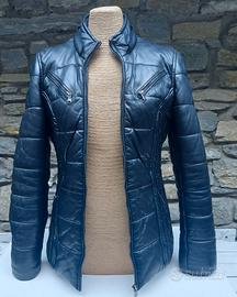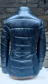 Morbida giacca invernale da donna in pelle di agnello con cappuccio staccabile e una vestibilità aderente. La giacca imbottita ha una cerniera frontale ed è rifinita con cuciture, cerniere nella parte superiore e cerniere sulle tasche laterali.