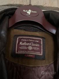 Giacca Marlboro in vera pelle, foderata, quattro bottoni, due tasche esterne e una interna.