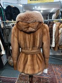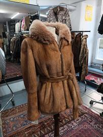 Bella Giacca in Vero-Visone Naturale Decolorato, tg 44, Perfetto per Primavera, Morbido, Lucido e Come Nuovo, Pelle Intera, Completamente Foderato con Pratico Cappuccio Controvento, Tasche Laterali e Chiusura con Cerniera Intera. N 738