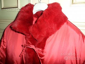 Bellissima, morbidissima e caldissima giacca invernale rossa con bordi in finta pelliccia rossa.Chiusura tramite tre laccetti,due tasche laterali.Taglia dalla 42 alla 46,lunga fino alla vita circa.Molto bella e versatile adatta ad un look elegante ma anche sportivo:fa la sua figura sia con un vestito o dei pantaloni da sera,sia su un paio di jeans.Usata ma in ottimo stato.