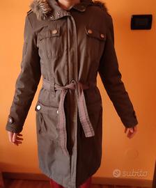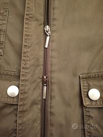 Vendo giacca invernale da donna, taglia S-40, con 4 tasche sul davanti, foderata all'interno, doppia cerniera verso l'alto e verso il basso, con cintura, colore verde militare. Marca Camalieu. Molto calda.