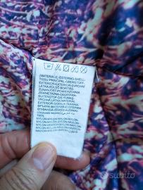 Giacca molto leggera e molto, molto calda; impermeabile e antivento. Non consumata nei gomiti e polsini; ha cappuccio non staccabile ma la pelliccia che lo circonda, sì. Addosso non è per niente stropicciata e veste taglia 44-46
