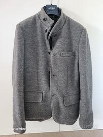 Giacca invernale doppiopetto colore grigio tg L (veste piccolo), marca Armani Jeans Blak Tones anniversario, come nuova.