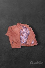 La giacca presenta un esterno stile camoscio marrone ed un interno imbottito con fantasie astratte.