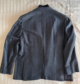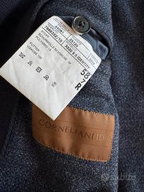 Presenta rever classico, chiusura frontale a due bottoni, tasche applicate sul davanti e taschino sul petto, doppio spacchetto posteriore. Le maniche con bottoni e le cuciture pulite riflettono la qualità costruttiva tipica di Corneliani.