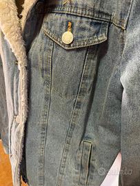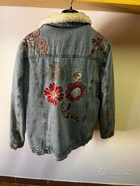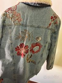 Giacca di jeans foderata in pelliccia sintetica con ricami floreali, del marchio Denim Co